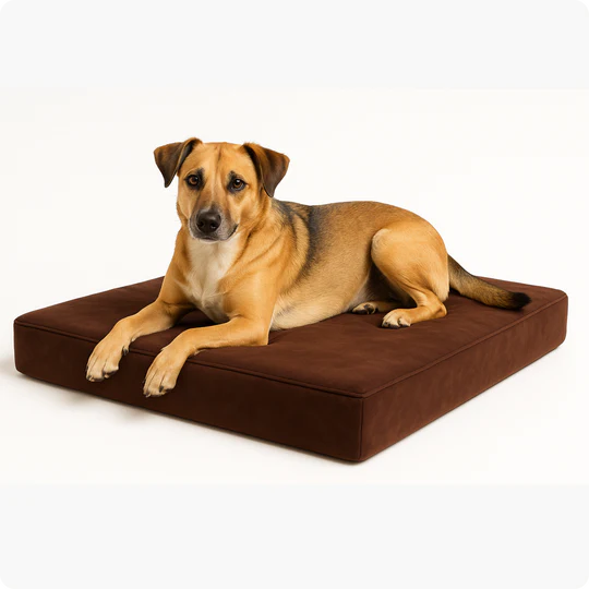 We use a proprietary blend of shredded memory foam, conventional foam, and fiber, creating a plush yet resilient internal structure. This unique combination delivers a supportive, orthopedic feel that gently cradles your dog’s body, helping relieve pressure on joints and promote restful sleep—perfect for dogs of all ages, especially seniors or those with joint issues.